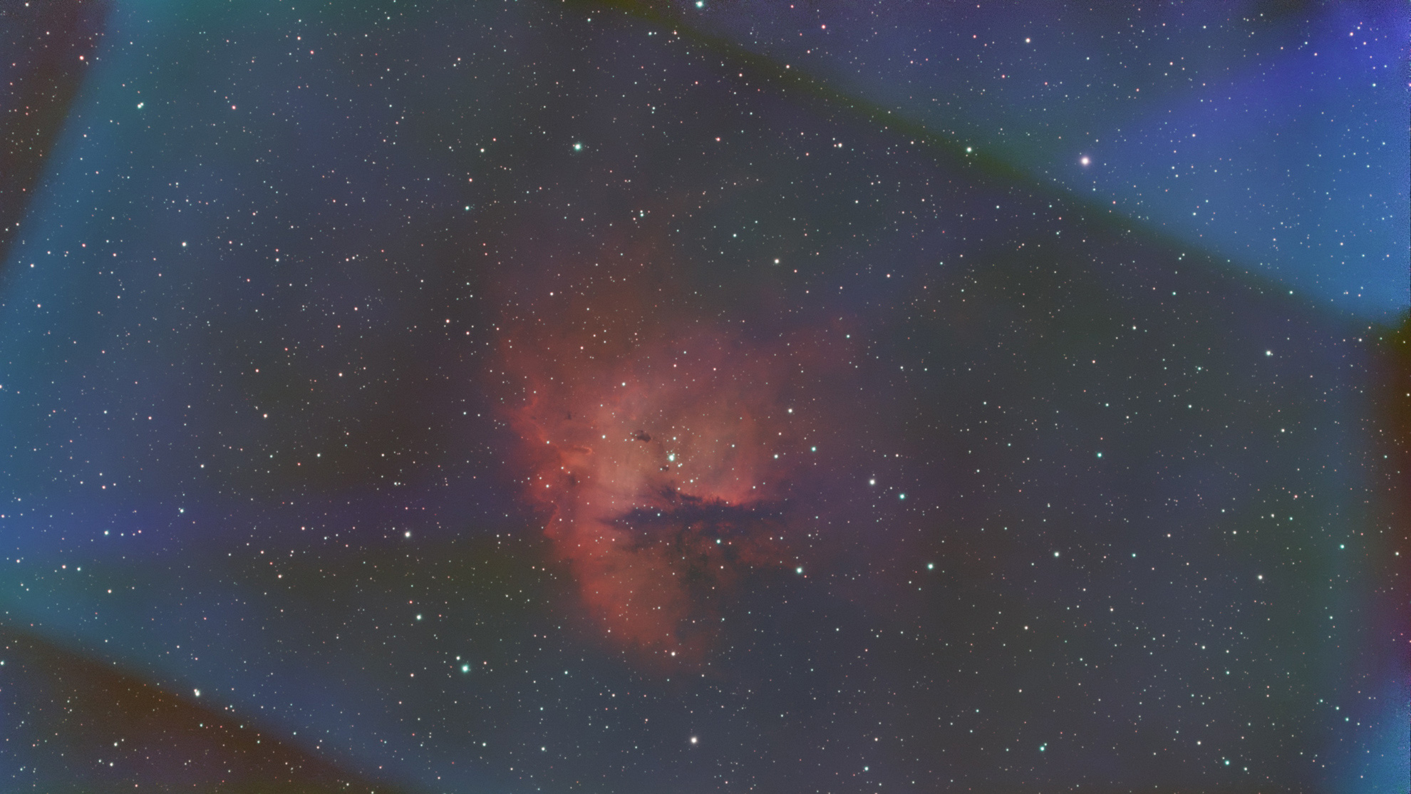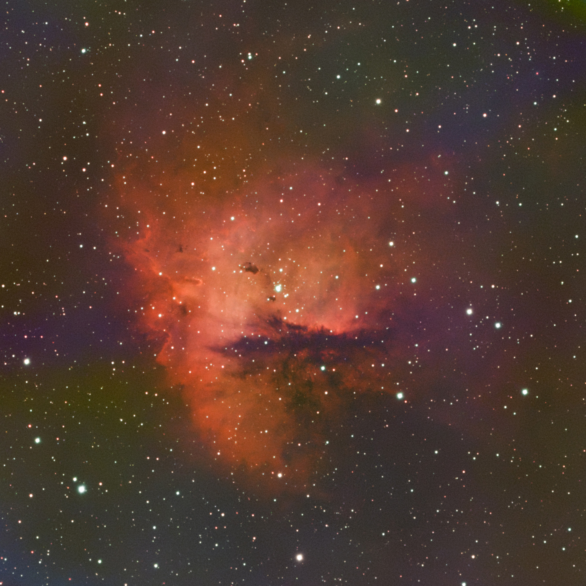Die Aufnahme aus der Silvesternacht vom 31.12.2025. Drei Tage vor Vollmond war der Mond schon sehr hell und hat leider offensichtlich leicht in das Teleskop geleuchtet. Trotz Filter ist das Licht des Mondes zu sehen.