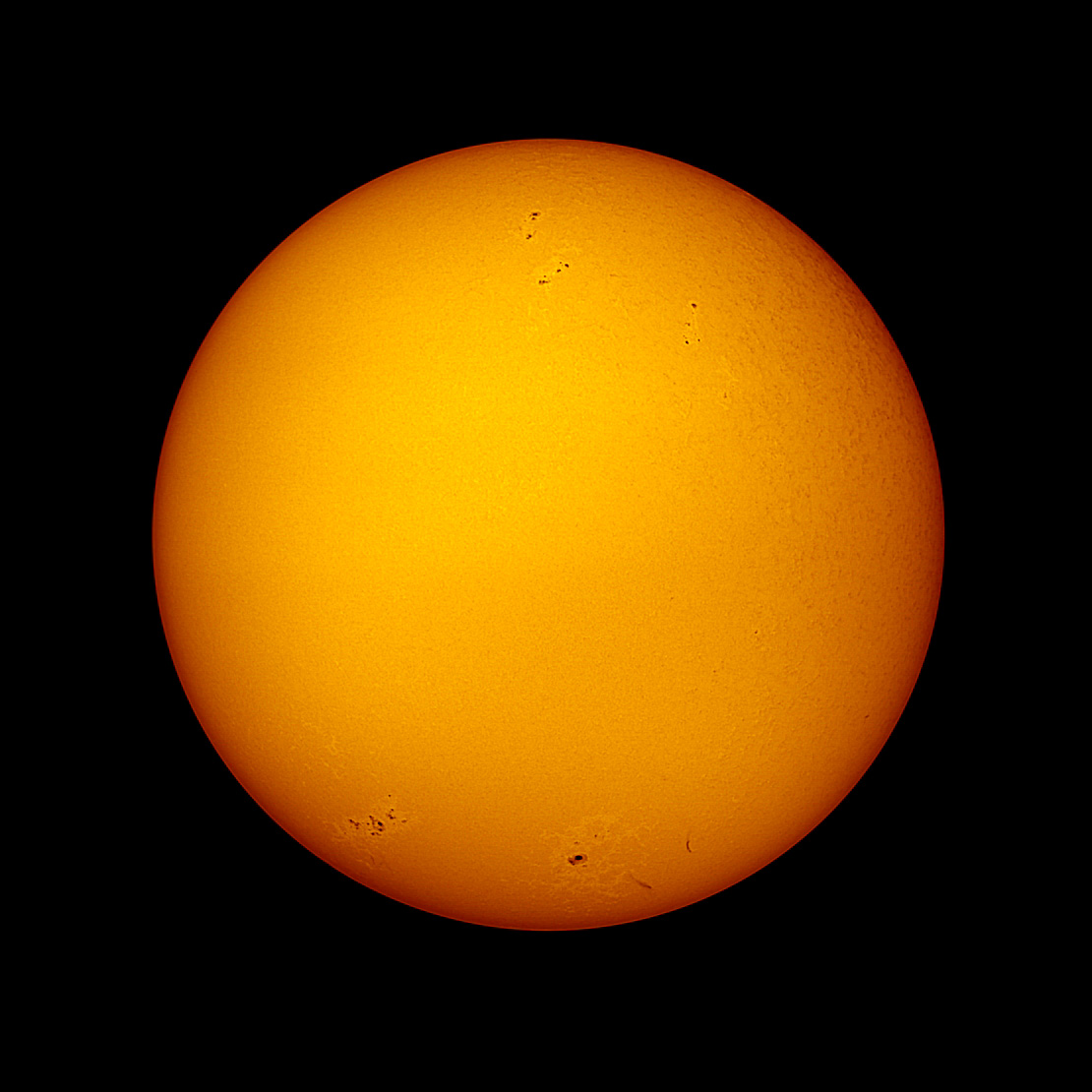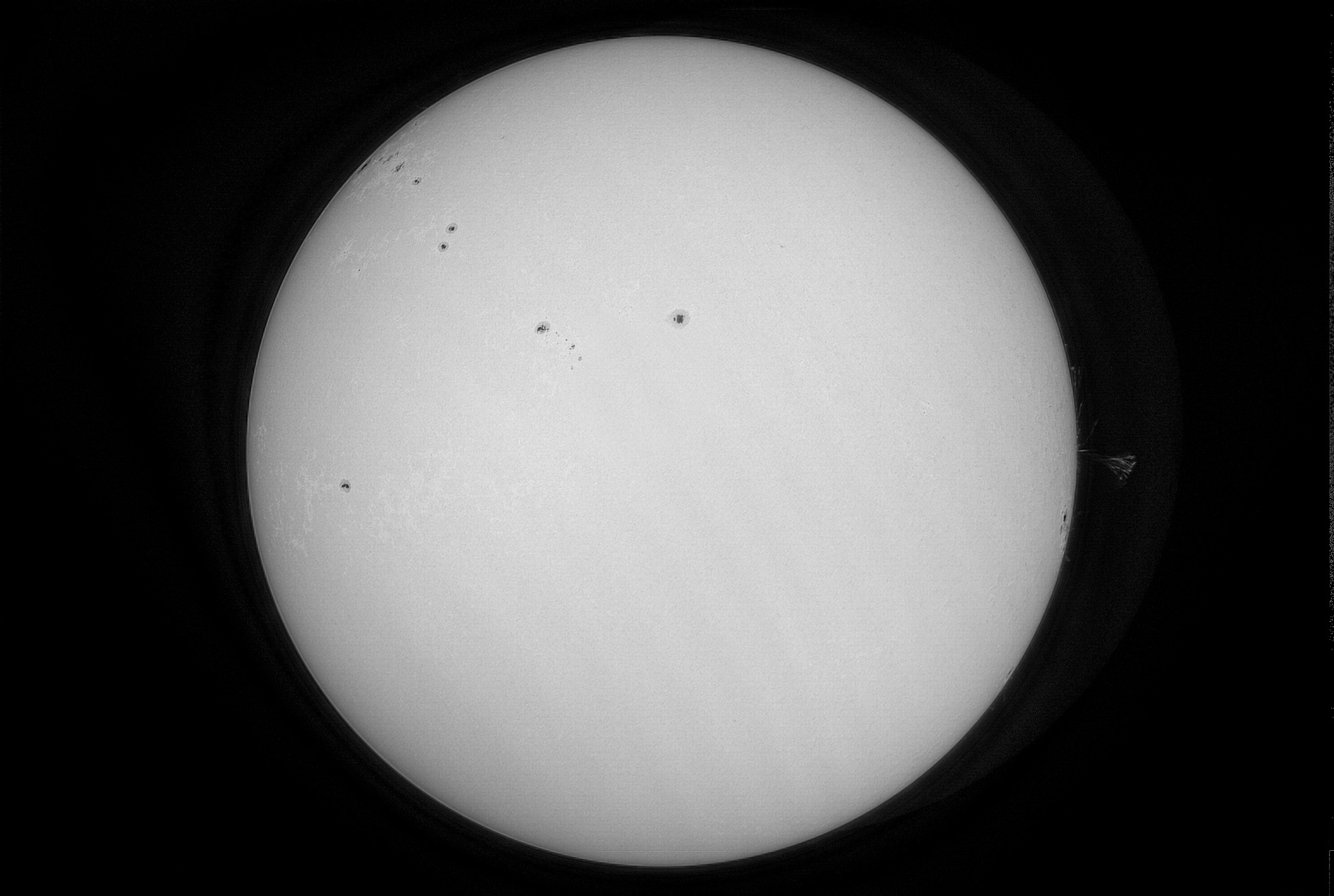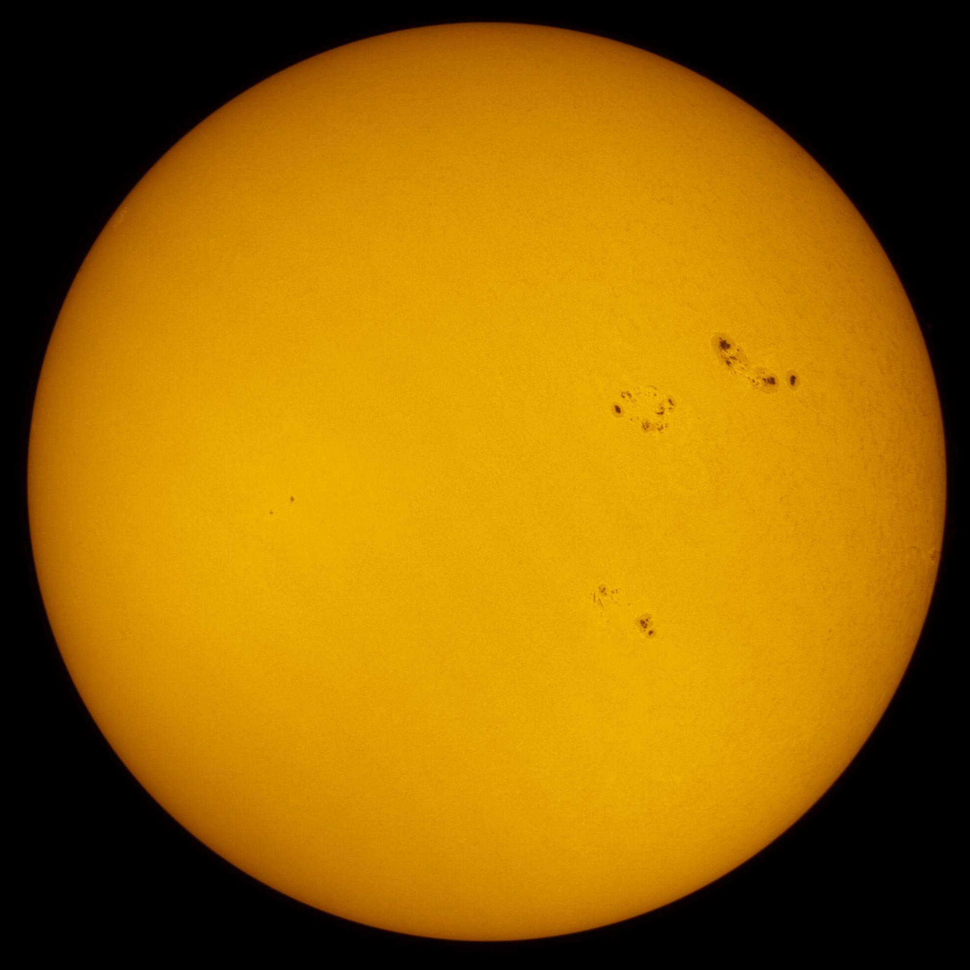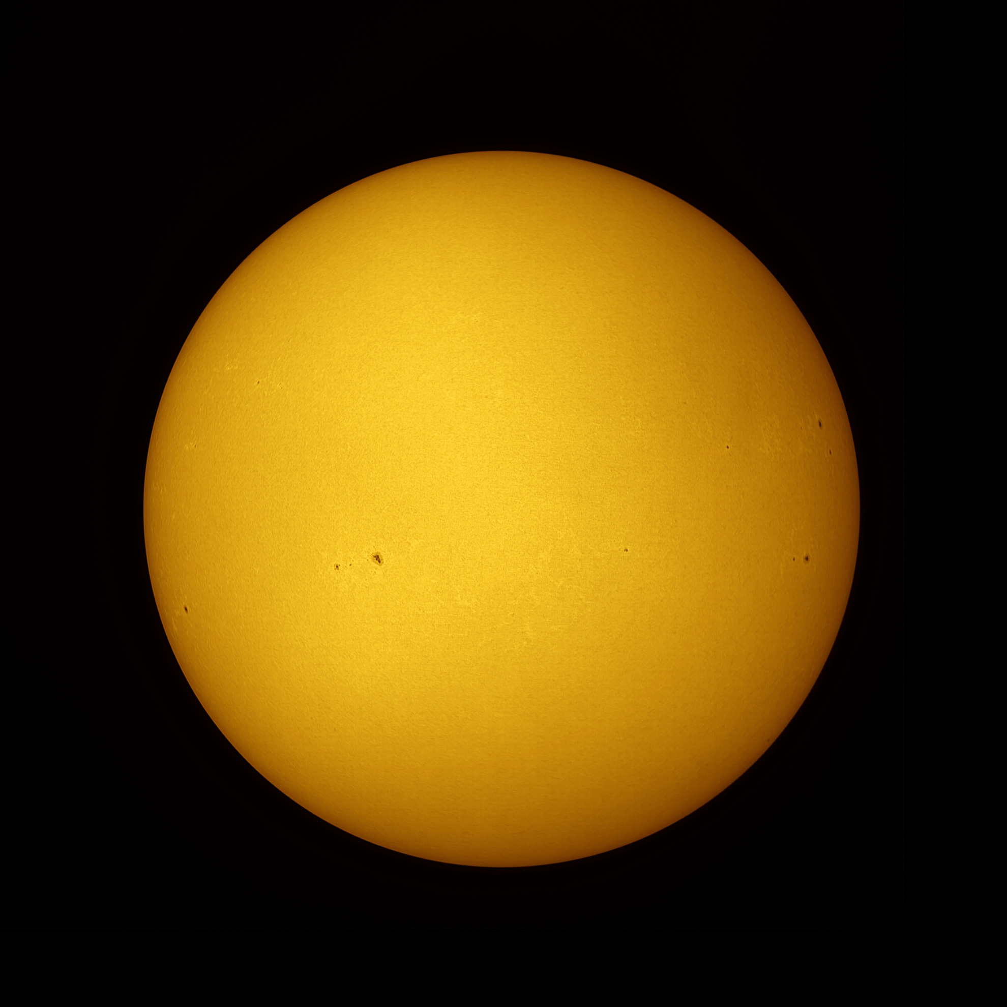 Die Sonne am Vormittag des 24. Juni 2024. Die Sonnenflecken aufgenommen mit einem Baader Tribant SCT und einer ZWO ASI432MM Kamera.