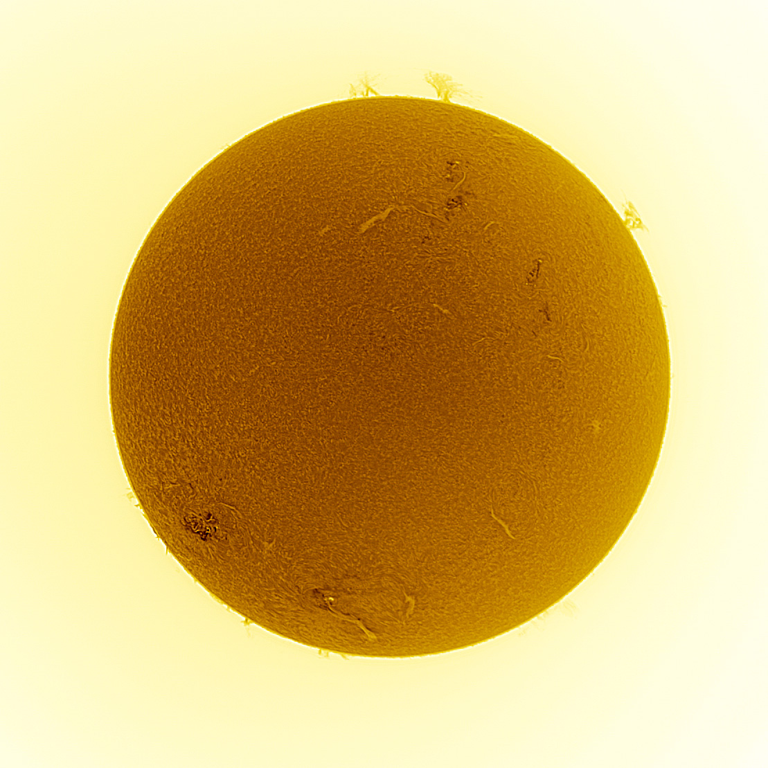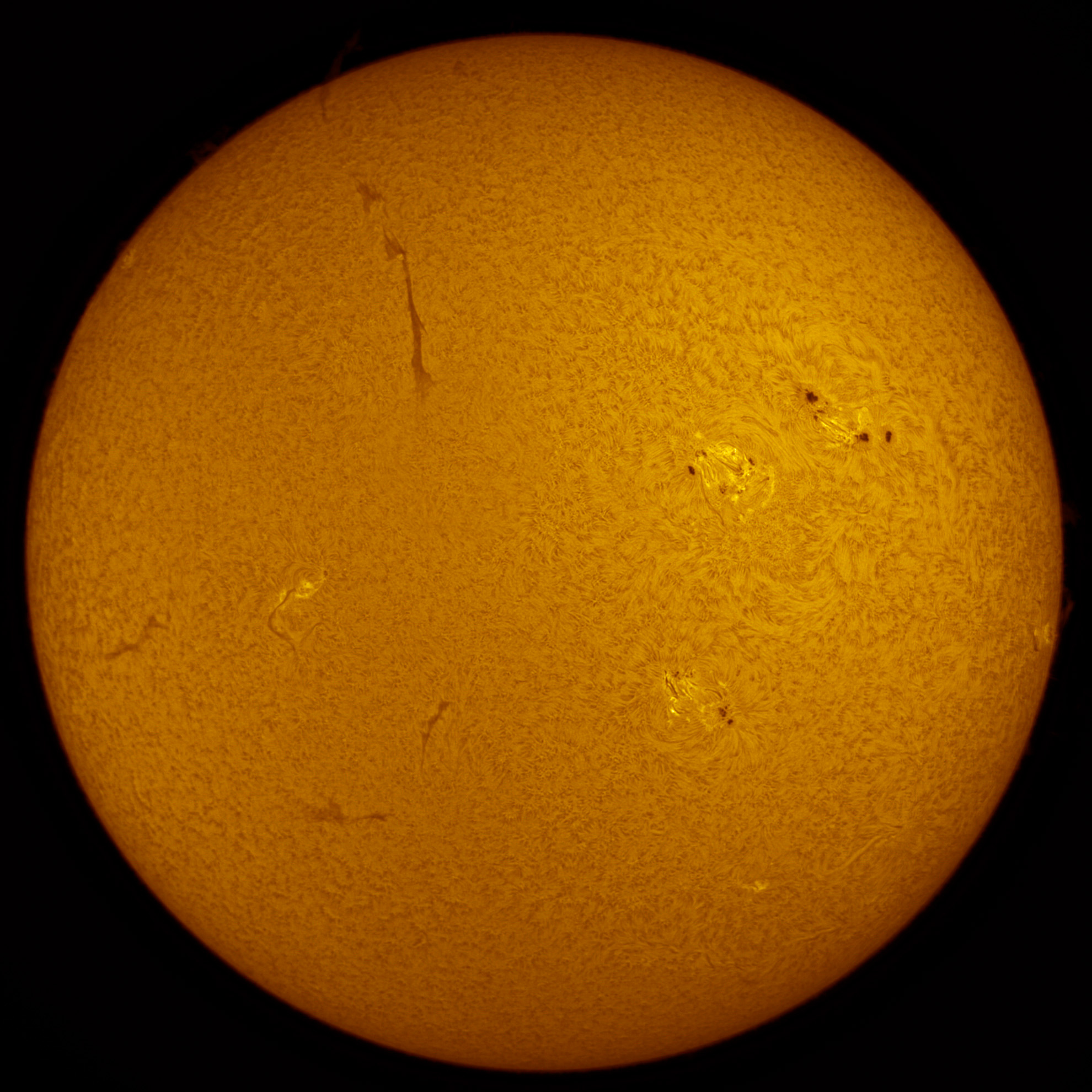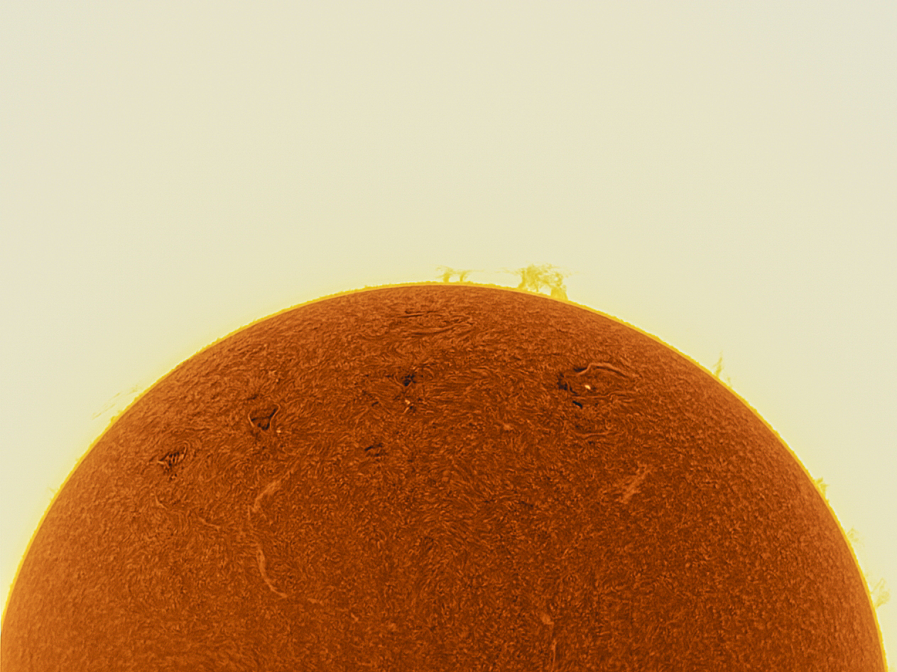 Die ganze Sonne mit dem LUNT LS60THa und einer ZWO ASI178MM Kamera.