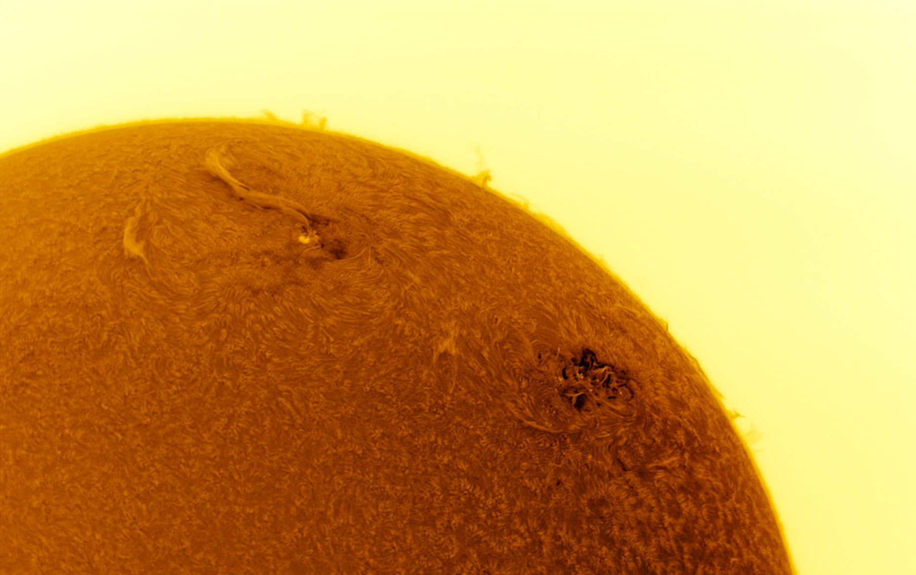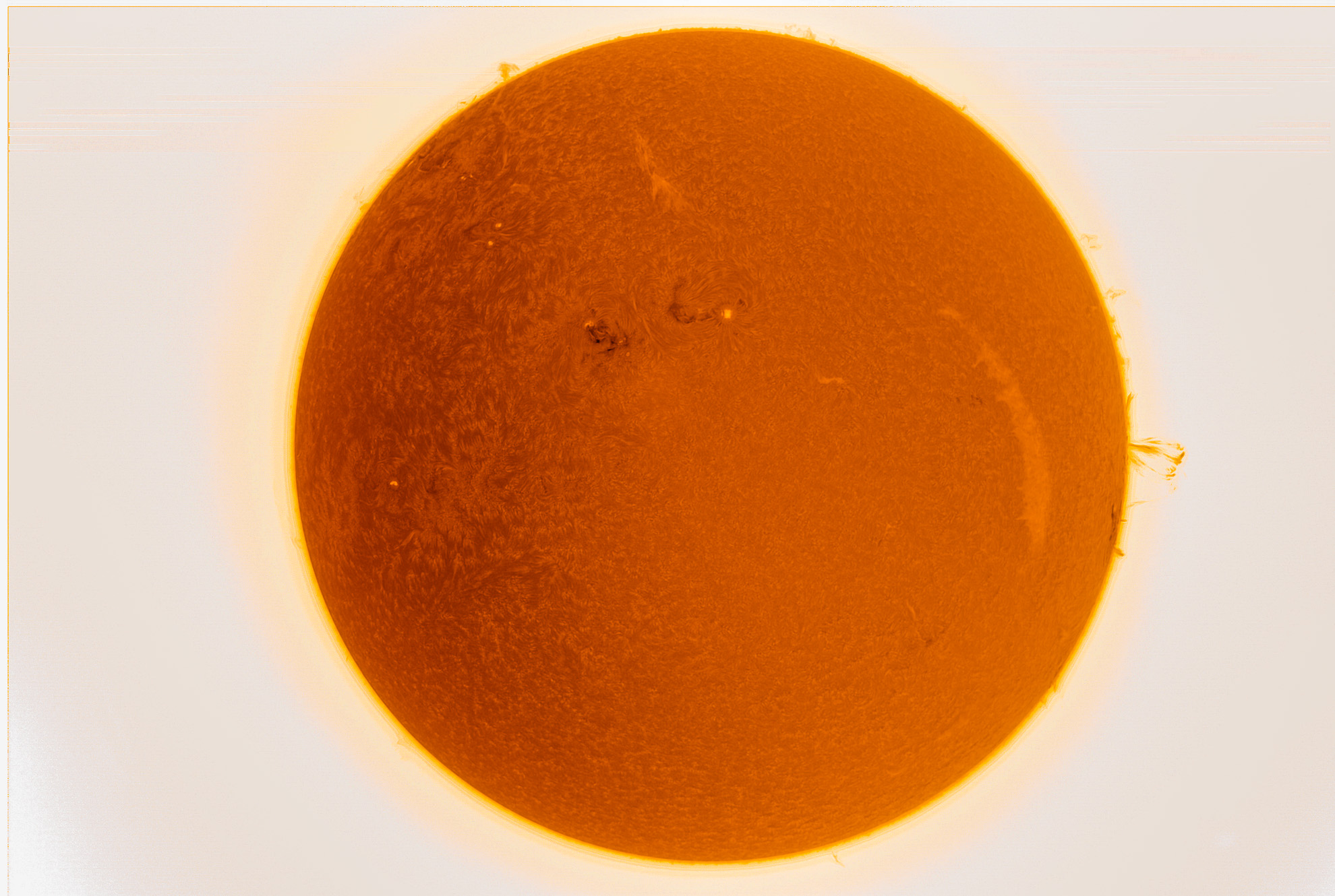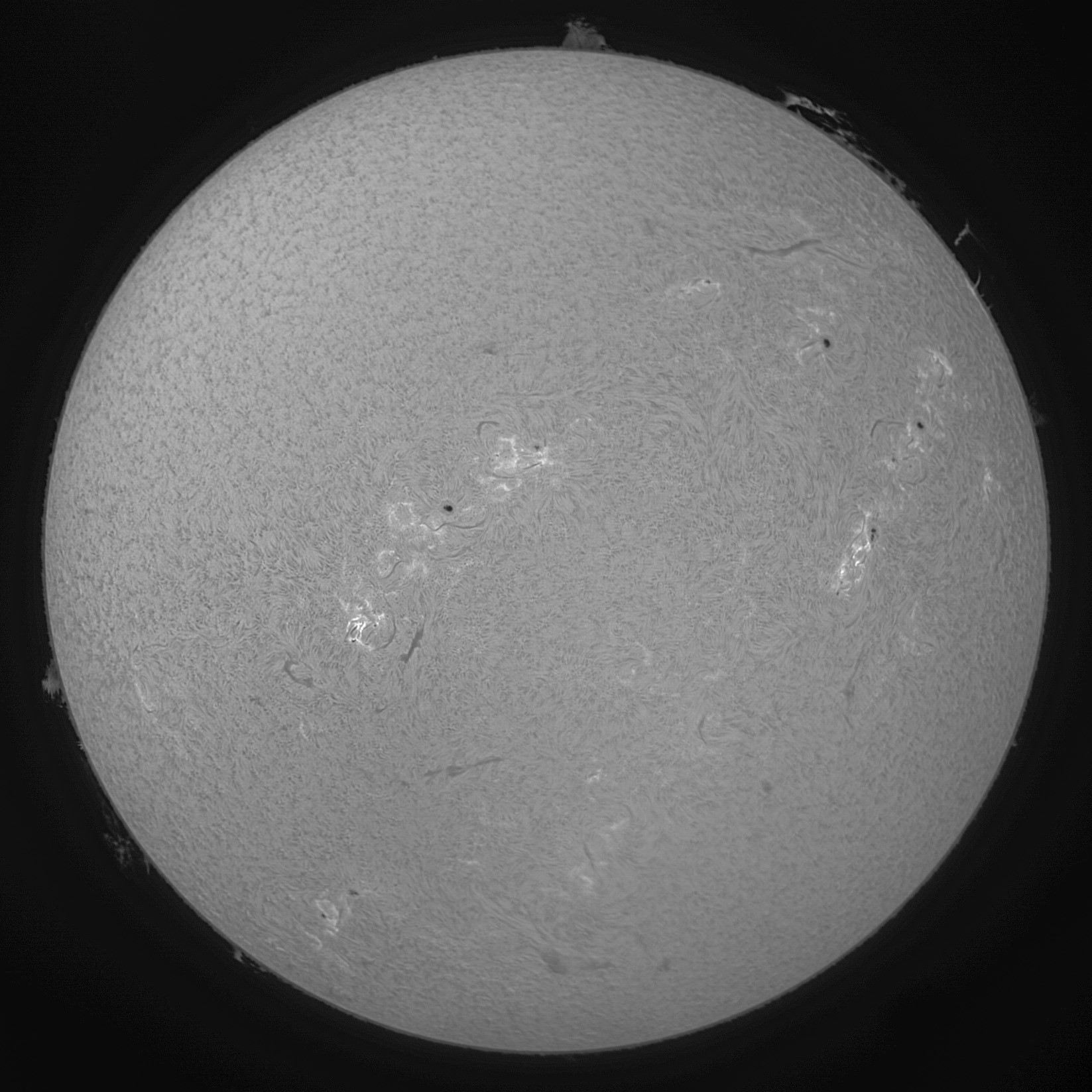 Die ganze Sonne mit dem LUNT LS60THa und einer ZWO ASI178MM Kamera.