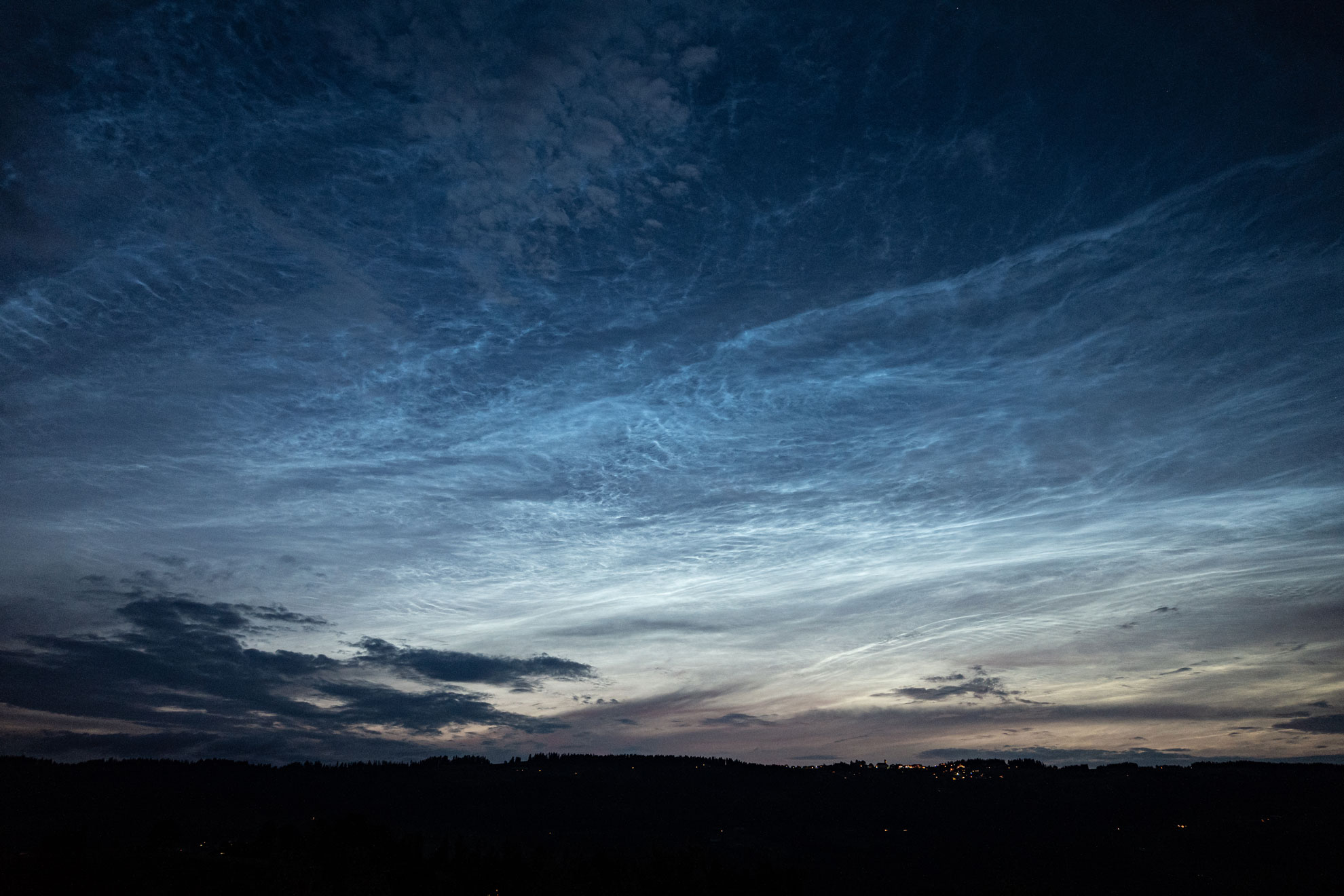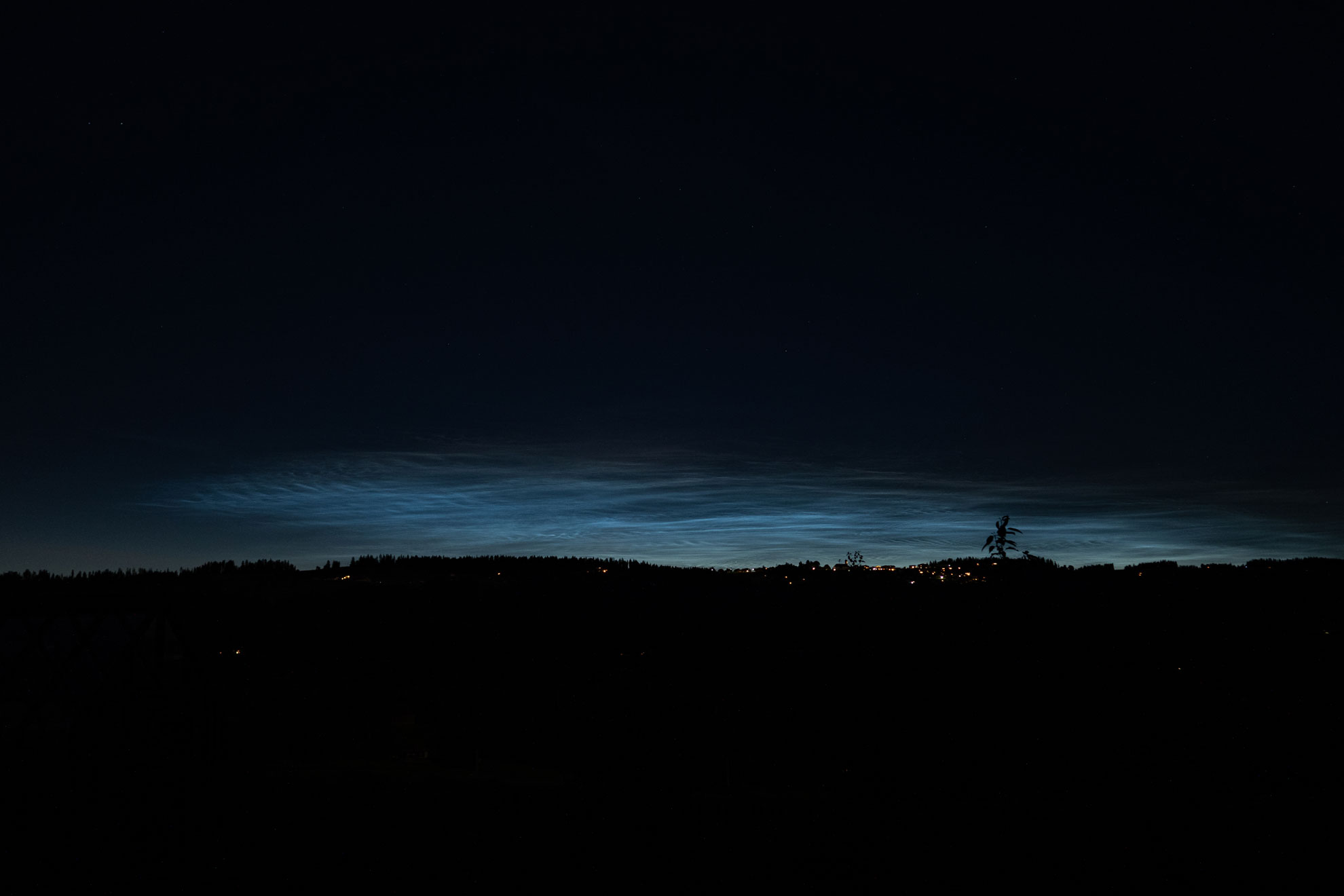 Leuchtende Nachwolken am 21. Juni 2019 um 22h23 über Sulzberg im Bregenzerwald