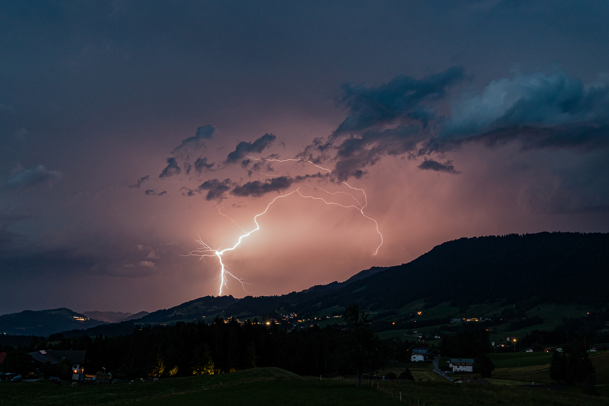 Gewitter über Sulzberg im Bregenzerwald am 20. Juli 2022