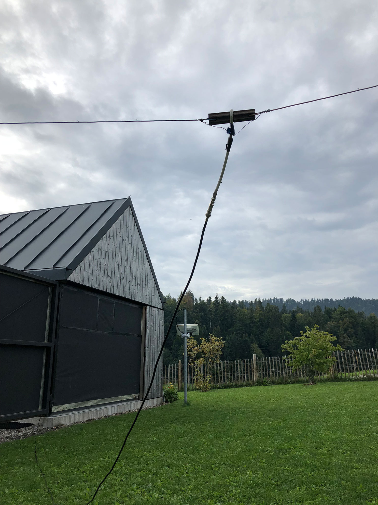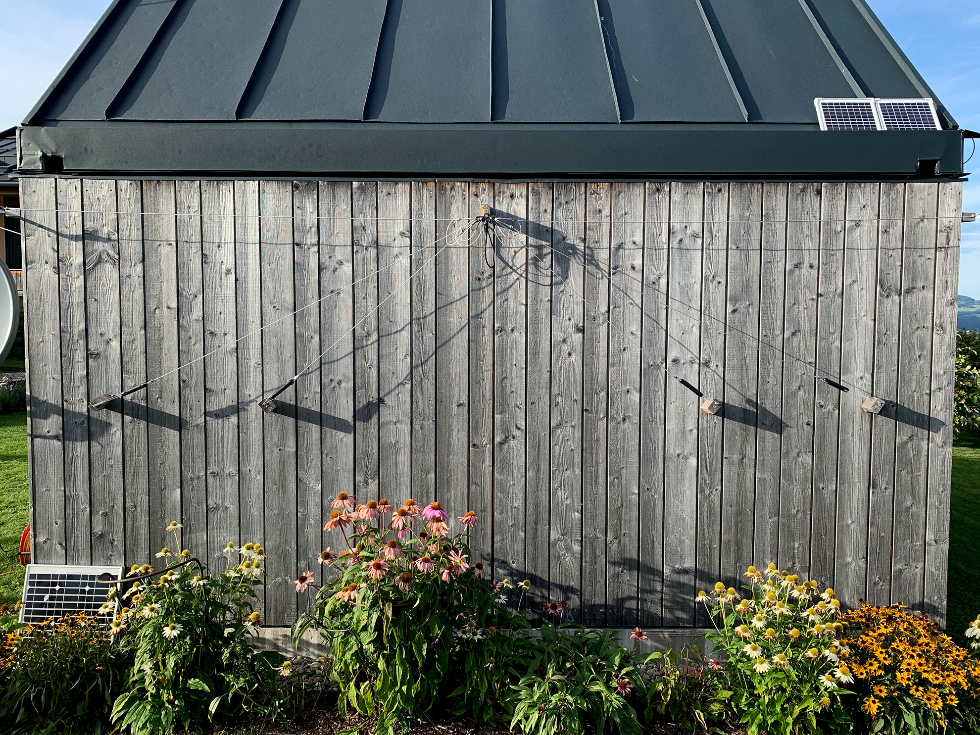 Die selbstgebaute Antenne an der Südwand der Schiebedach Sternwarte in Krumbach/ Bregenzerwald